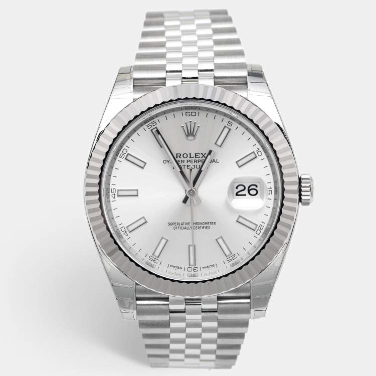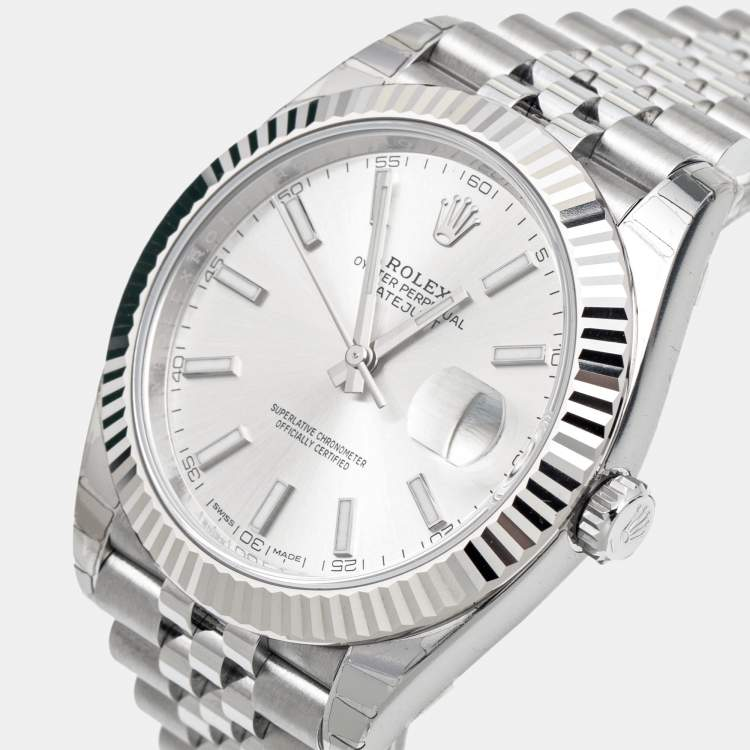 Rolex Datejust 41 Oyster Silver Dial Oystersteel and White Gold Jubilee Bracelet Watch Mens - M126334-0004