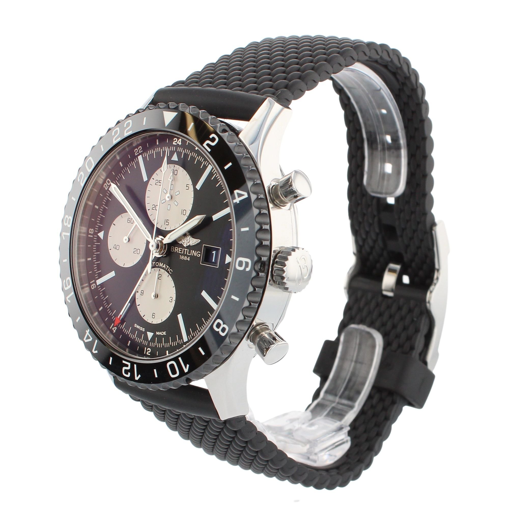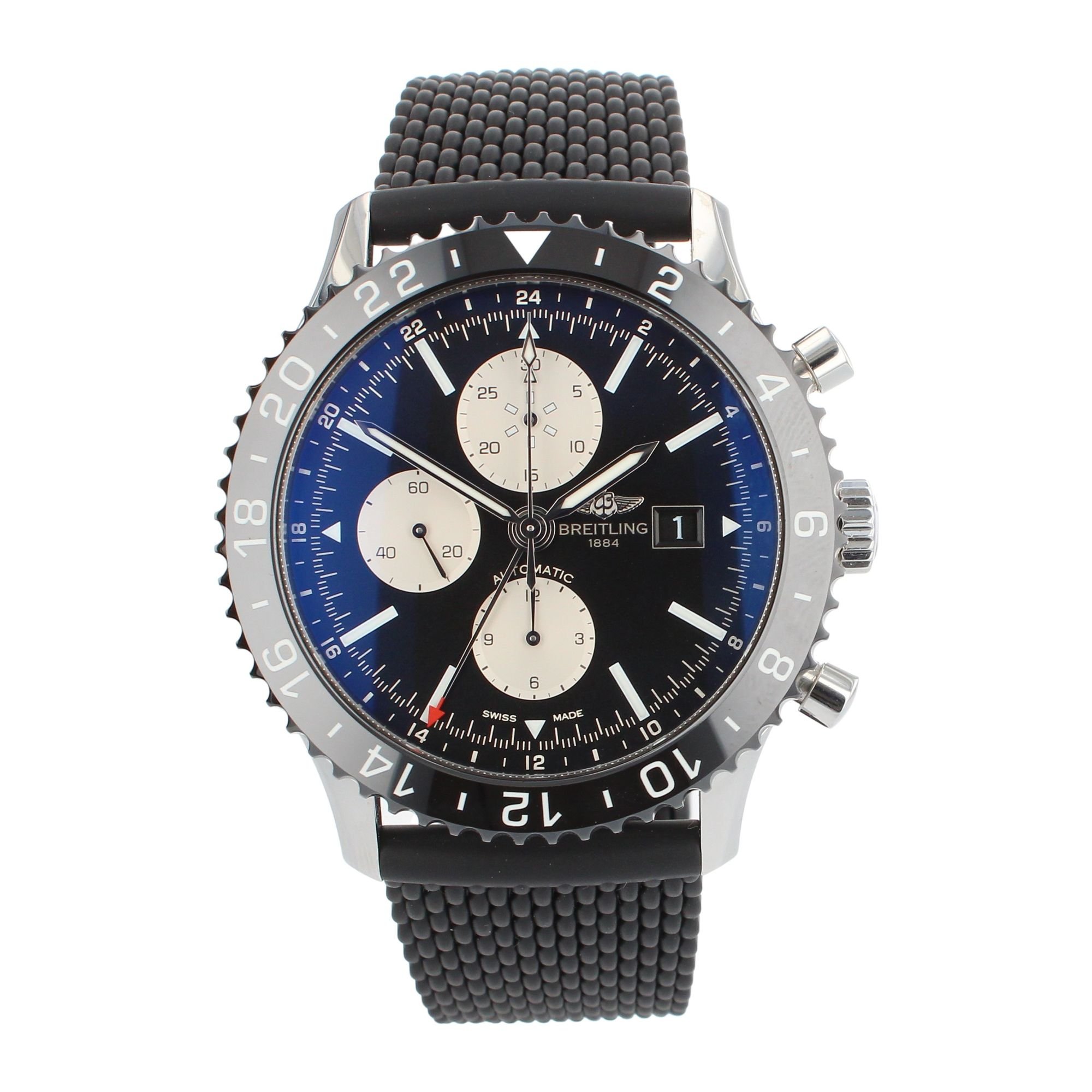 Gents Breitling Chronoliner Ref Y24310 46mm stainless steel case with black baton dial. Presented on an original black rubber strap and powered by an automatic movement. Comes with box.