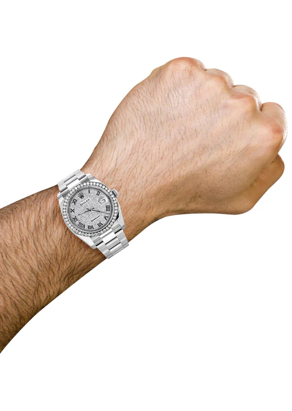 Strap material: 18ct white gold, head-shaped, three-part solid link, set with 596 round diamonds