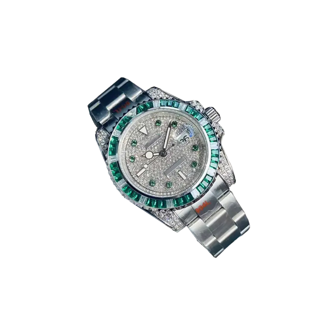 Introducing the ultimate luxury timepiece for the modern man - the Men's Diamond Watch Rolex Submariner Sapphires Bezel. This stunning watch combines the iconic design of the Rolex Submariner with the elegance of diamond and sapphire accents, making it a true statement piece. Crafted by the renowned brand Rolex, this watch boasts a 40mm case diameter, making it the perfect size for any wrist. The case is made of high-quality stainless steel, ensuring durability and longevity. The bezel of this watch is adorned with two types of precious stones - diamonds and sapphires. The white diamonds add a touch of sophistication, while the blue sapphires add a pop of color and uniqueness. The combination of these two stones creates a mesmerizing contrast that is sure to catch the eye. The bracelet of this watch is made of the same stainless steel material, featuring the classic Oyster design. This type of bracelet is known for its comfort and durability, making it the perfect choice for everyday wear. The bracelet is also adjustable, ensuring a perfect fit for any wrist size. The dial of this watch is a work of art, featuring a silver tone and adorned with diamonds. The diamonds are carefully placed to create a stunning pattern that adds a touch of luxury to the watch. The dial is protected by a scratch-resistant sapphire crystal, ensuring that it stays in pristine condition for years to come. This watch is not only a fashion statement but also a functional timepiece. It is powered by an automatic movement, ensuring accurate timekeeping. The watch is also water-resistant up to 300 meters, making it suitable for swimming and diving. As with all Rolex watches, this Submariner comes with a 5-year warranty from ItsHot, giving you peace of mind and confidence in your purchase. It is also engravable, making it the perfect gift for a special occasion. These pre-owned Rolex watches are authentic Rolex watches with genuine diamonds, in excellent condition, they are checked for authenticity and basic water resistance. Since the watch is decorated with diamonds and gemstones, it is not recommended to shower or swim with the watch on.